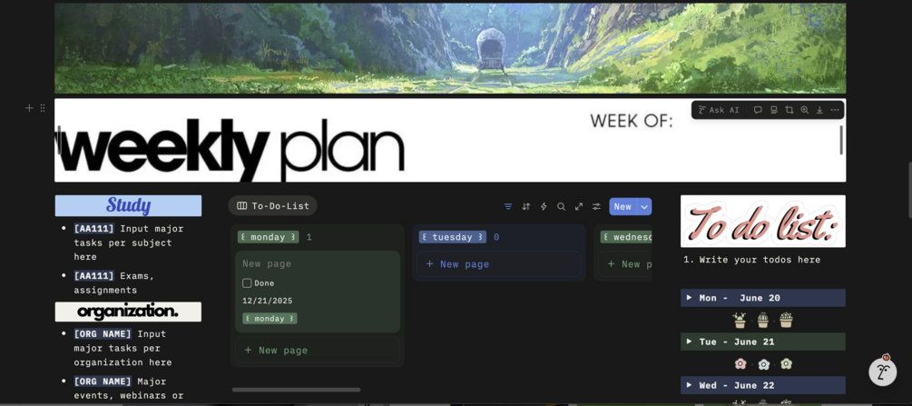 • Weekly study plans